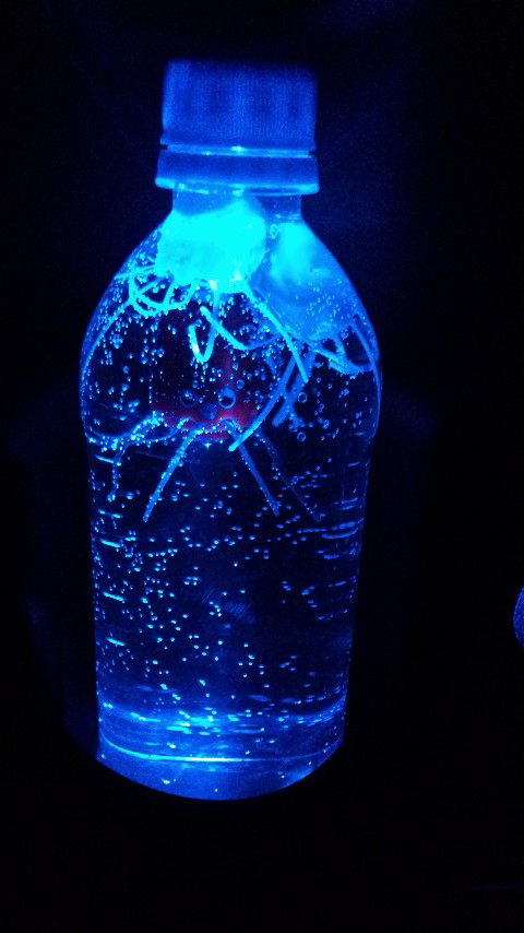 .ドリンクホルダーイルミネーションに照らされるマジックペット。 タントリアのドリンクホルダーイルミネーションにセットしてあるペットボトルのアクセントにマジックペットを飼育。小さいお子様には喜ばれると思います。